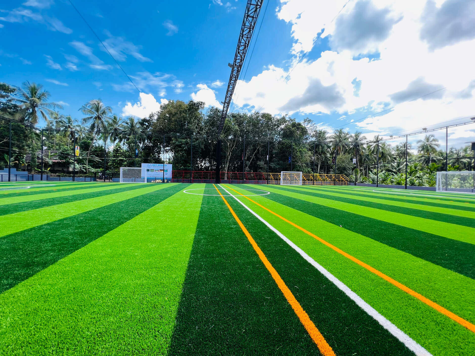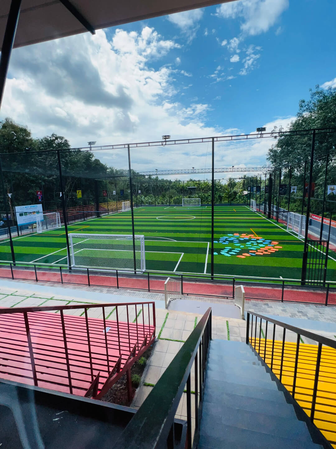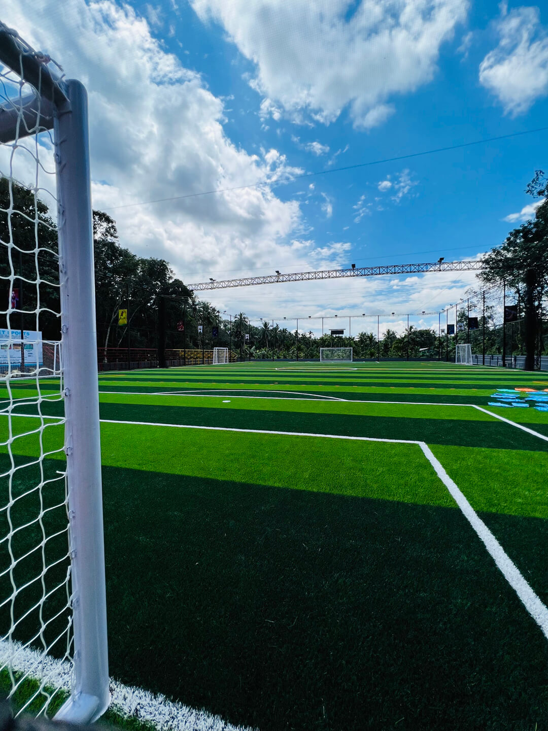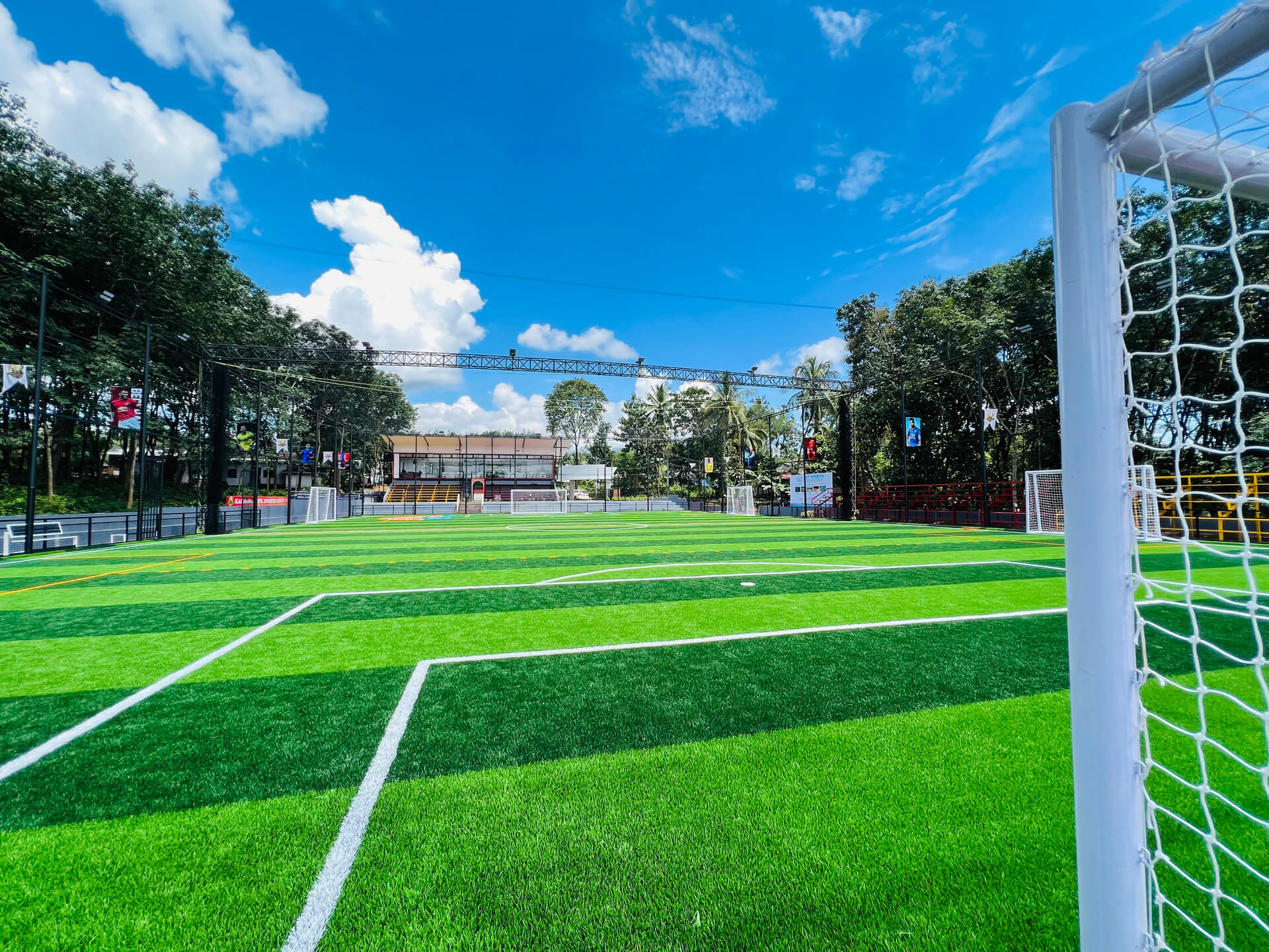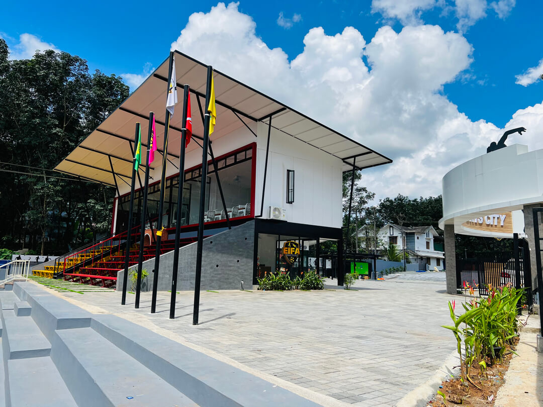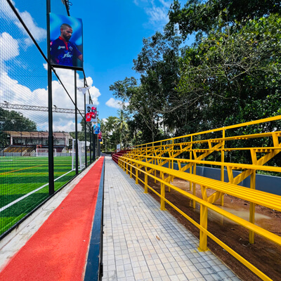 Karimbalayil Sports City is a sports centre which includes 7s Football turf (56mx35m), 5s Football turf X2, Indoor Cricket, 200m Synthetic track, EIFA football academy and much more activities with lots of advanced facilities including wide seating capacity (2500) for visitors in the gallery, special VIP and Family gallery and much more exciting things. We have international style dressing rooms, A very good-looking digital score board. And our customers can always enjoy a light music while they are at Karimbalayil Sports City.